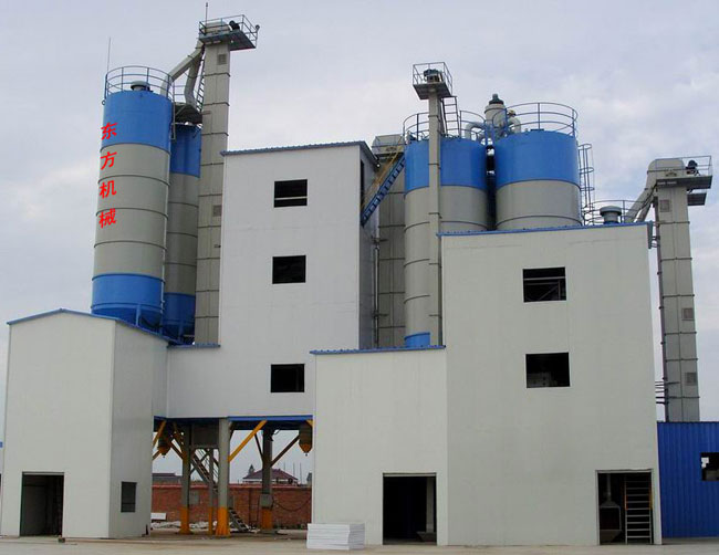 主要由提升輸送系統(tǒng)、計(jì)量配料系統(tǒng)、混合系統(tǒng)、儲(chǔ)料系統(tǒng)、包裝系統(tǒng)、除塵系統(tǒng)、控制系統(tǒng)、鋼架平臺(tái)等組成。